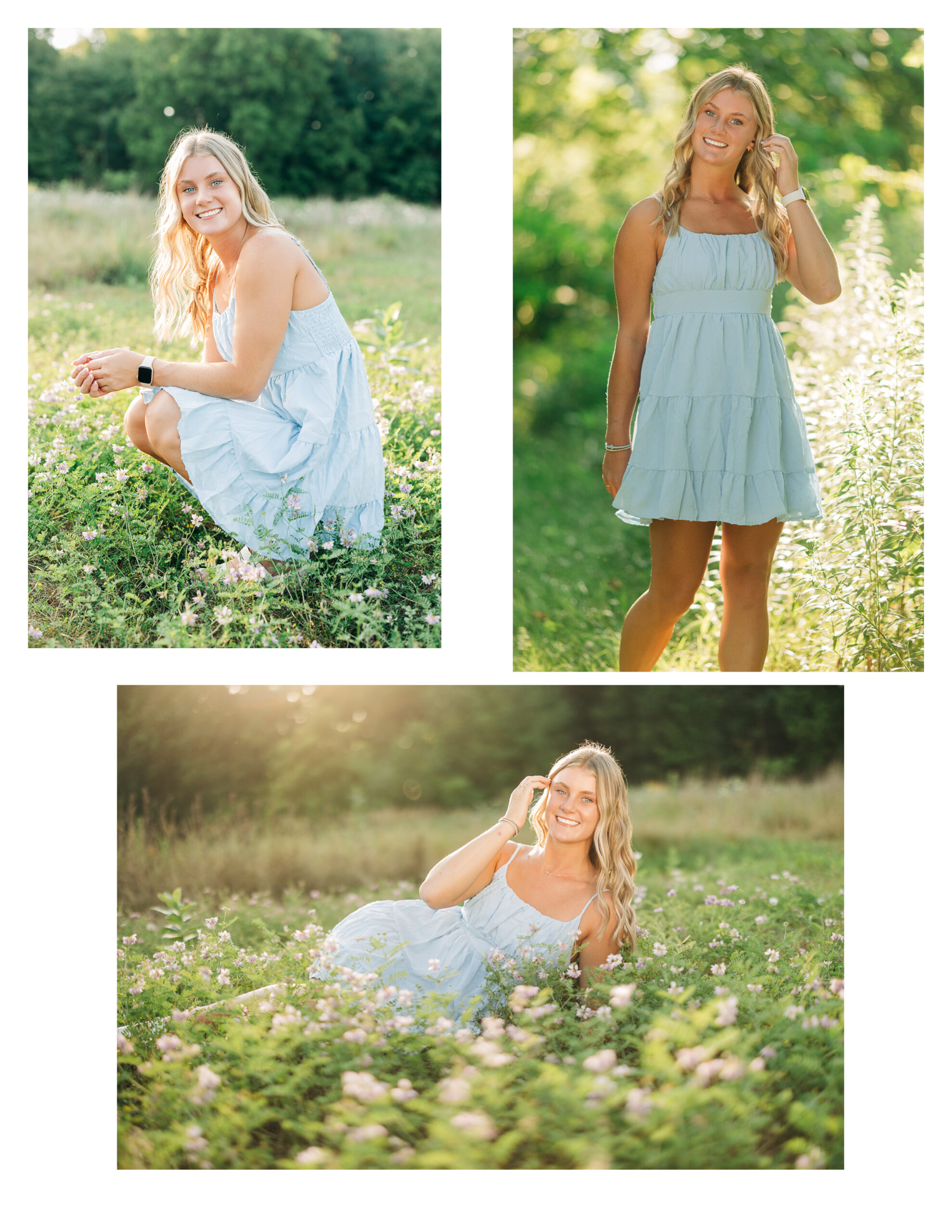 For her final outdoor look, Avery changed into a simple summer dress just as we found a beautiful patch of wildflowers. It felt like the perfect moment. The soft colors, the golden light, and the movement in the field created some of my favorite portraits from the entire session.